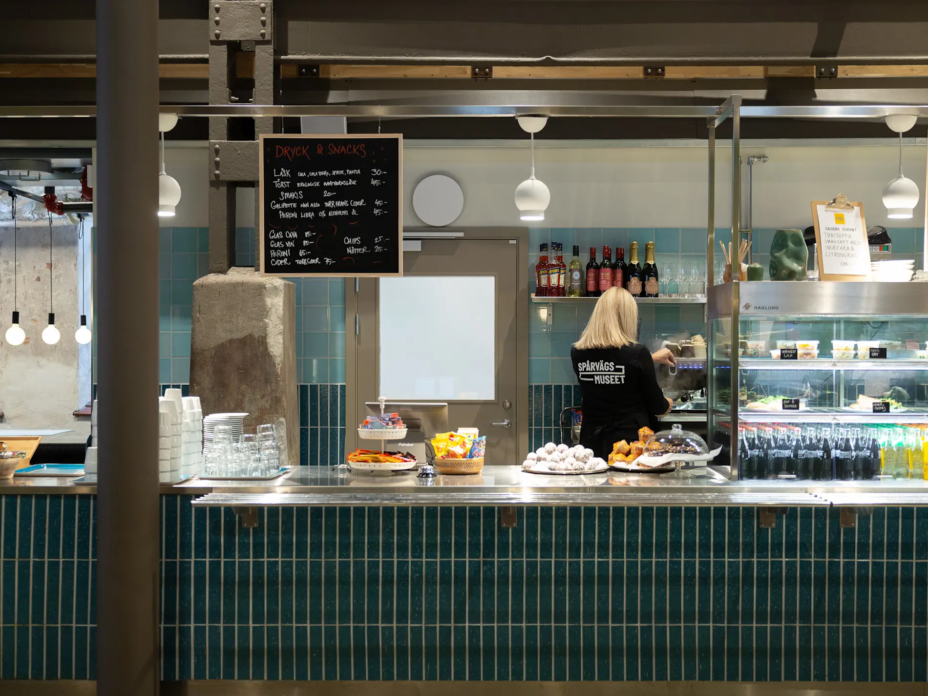 I museets café finns ett brett utbud av mat och fika. Vi erbjuder varm mat, dagens soppa, smörgåsar, sallader, bakverk samt varma och kalla drycker. Självklart finns vegetariska och veganska alternativ, samt en barnmeny. Här finns också modelltåg som förgyller fikastunden för de små gästerna.